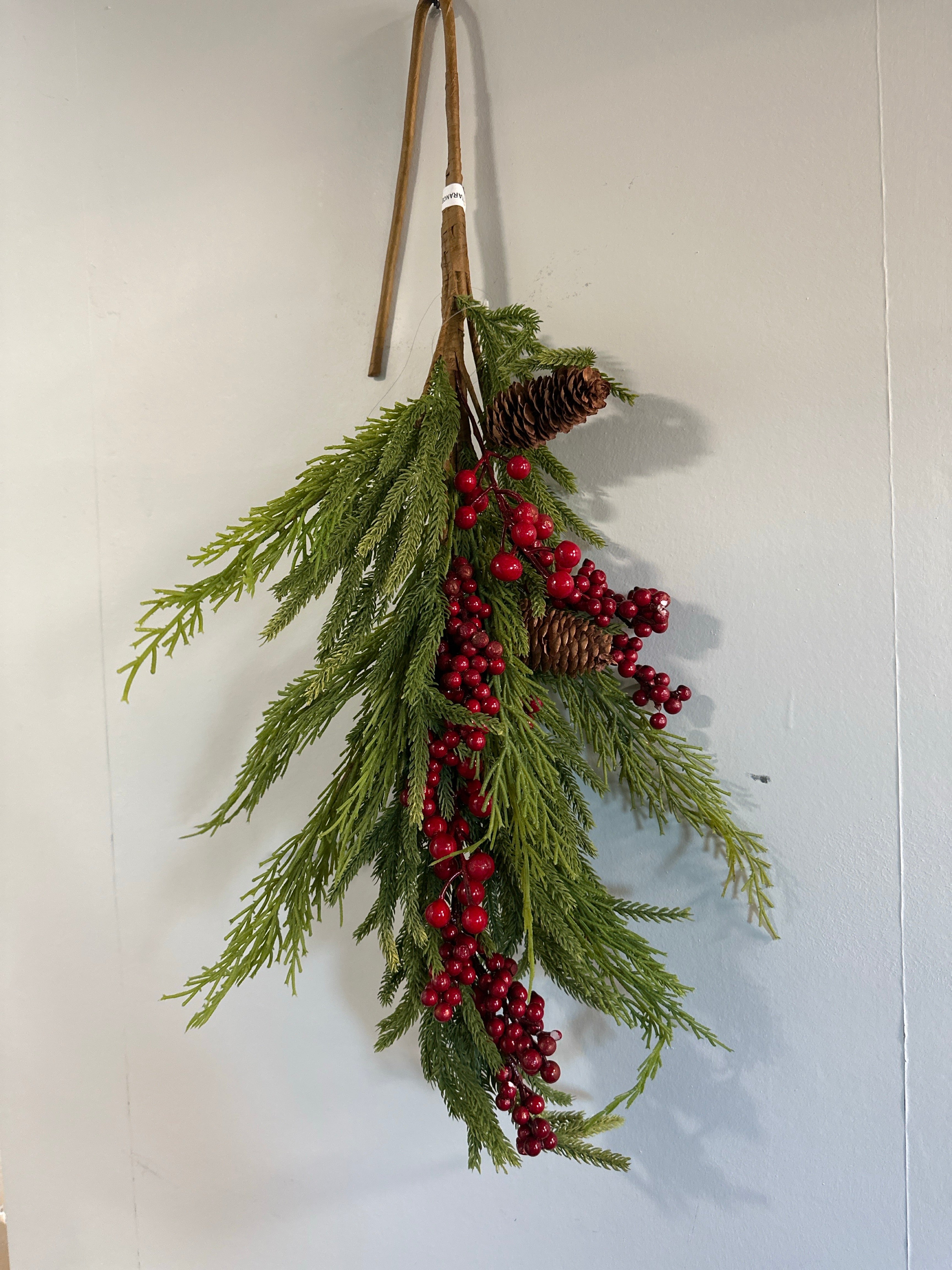 Frosted Burgundy Hanging Greenery – Winter Wall Décor