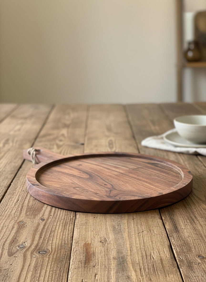 Round Wooden Serving Board with Handle