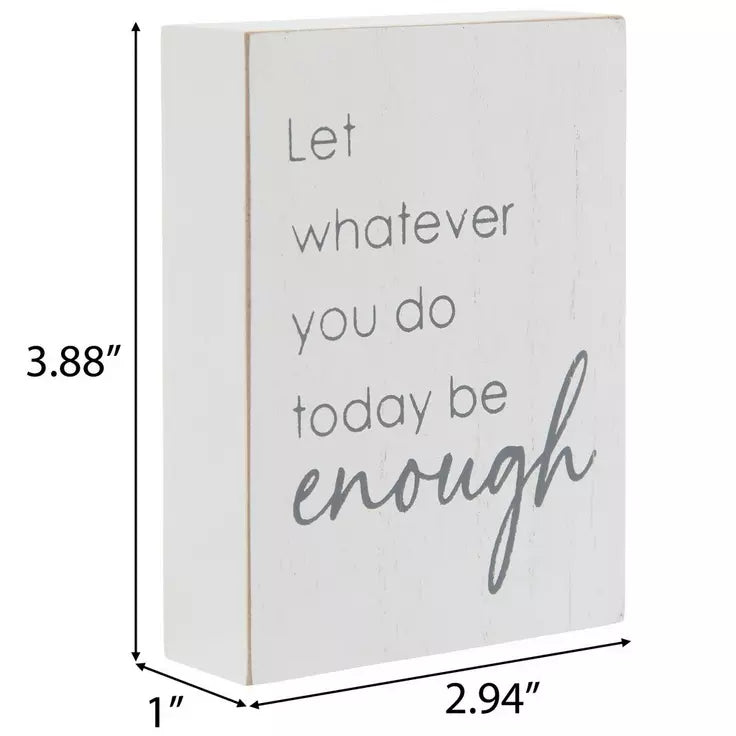 “Let Whatever You Do Today Be Enough” Mini Wooden Block Sign