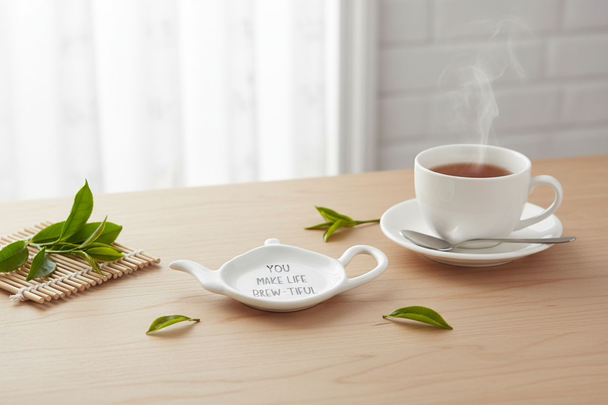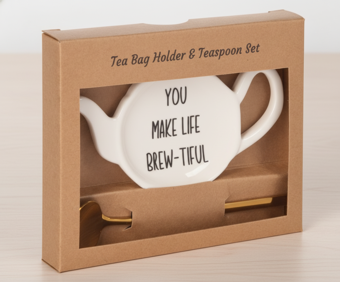 Tea Bag Holder & Teaspoon Set – Fun Phrases for Tea Lovers