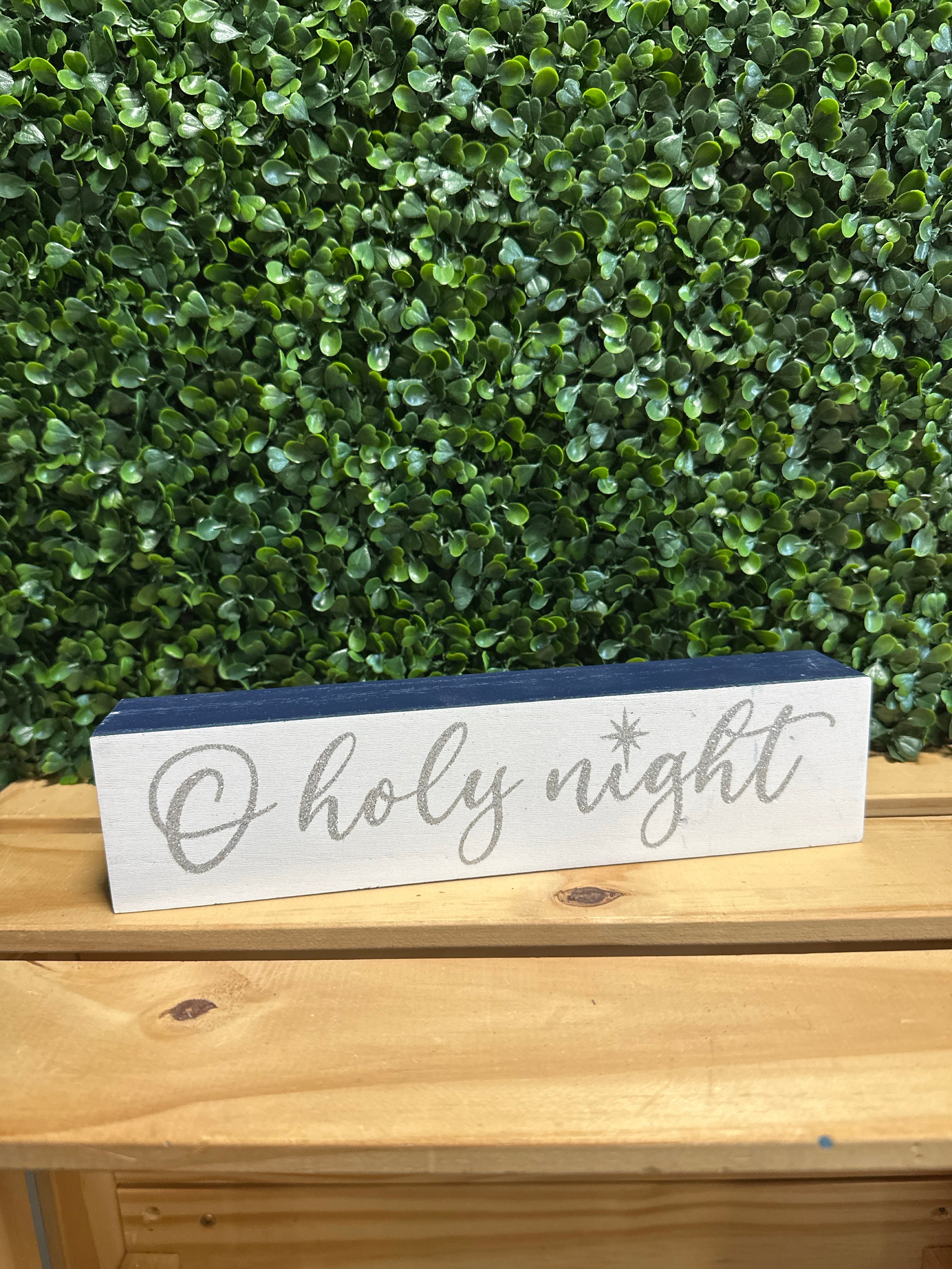 “O Holy Night” Wooden Block Sign – Rustic Christmas Shelf Decor