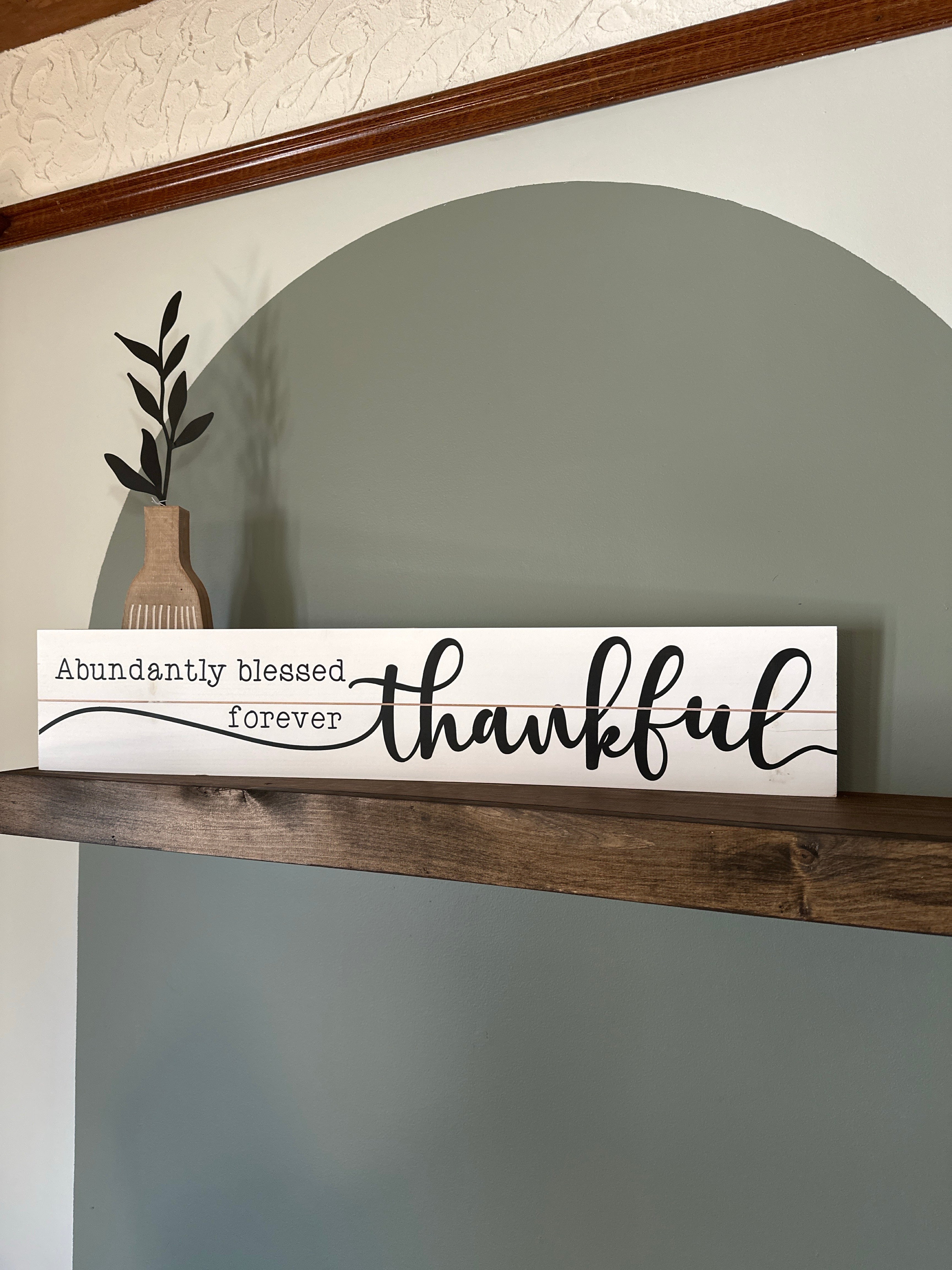 “Abundantly Blessed, Forever Thankful” Wooden Sign