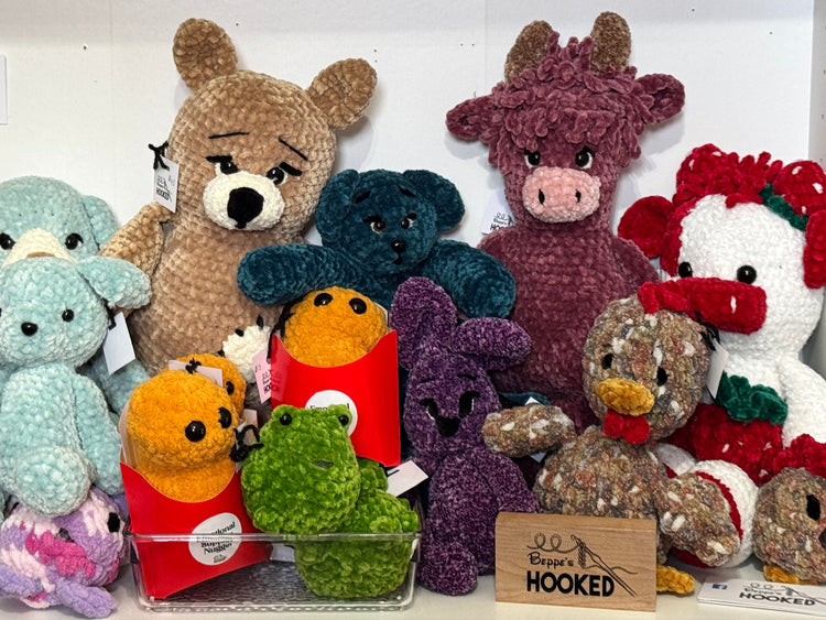 Hooked on the art of crocheting & inspired by her many grandchildren- creating beautifully handcrafted characters, thoughtfully made plushies full of charm and personality.