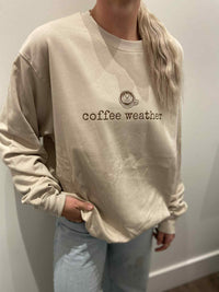 Cozy up in our “Coffee Weather” crewneck — the perfect blend of comfort and minimal style for those crisp mornings and café runs. This soft midweight sweatshirt features a relaxed, unisex fit with dropped shoulders and ribbed cuffs, making it ideal for layering or lounging.