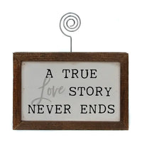 A timeless sentiment for any home, this rustic framed sign features the heartfelt phrase “A True Love Story Never Ends.” Finished with a warm wood frame and a neutral background, it fits beautifully into farmhouse, cottage, or classic décor styles.