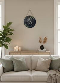 Add serene seasonal beauty to your home with this elegant round sign. Featuring the peaceful phrase “All Is Calm” in flowing script against a rich dark background, accented with greenery and hung by rustic jute rope — this piece brings both charm and calm to your holiday décor.