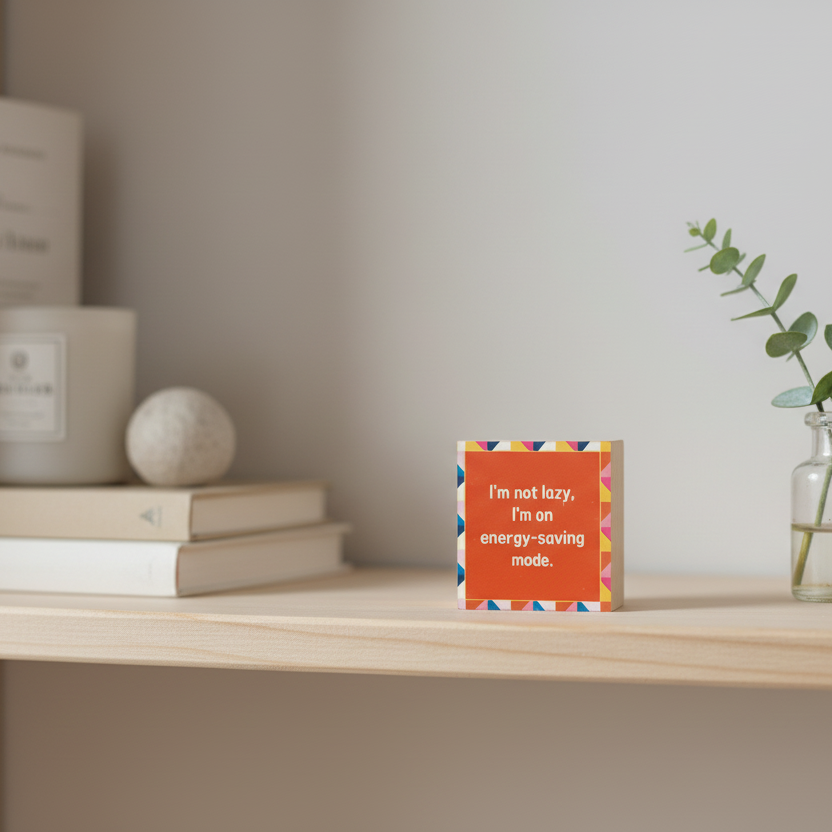 A humorous desk or shelf accent that speaks volumes about your lifestyle philosophy. A lighthearted gift for anyone who appreciates clever humor and self-aware wisdom.