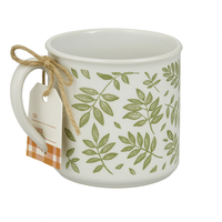 Sip in style with this nature-inspired stoneware mug, adorned with a charming green leaf pattern against a soft cream background. Its organic, hand-crafted look and rustic twine detail on the handle give it a warm, artisanal feel. Perfect for coffee, tea, or your favorite cozy beverage, this mug brings a touch of the outdoors to every sip.