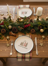 A charming way to serve up seasonal cheer! These mini Christmas plates feature simple winter village artwork paired with classic holiday phrases — perfect for cookies, appetizers, treats, or even as decorative accents around your home.