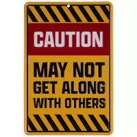 Showcase your fun, but prickly personality with comical signs like this May Not Get Along With Others Metal Sign. This yellow caution sign features stripes at the top and bottom and the phrase "May Not Get Along With Others" in bold black font. Hang this up in your garage, so guests will know who they're dealing with.