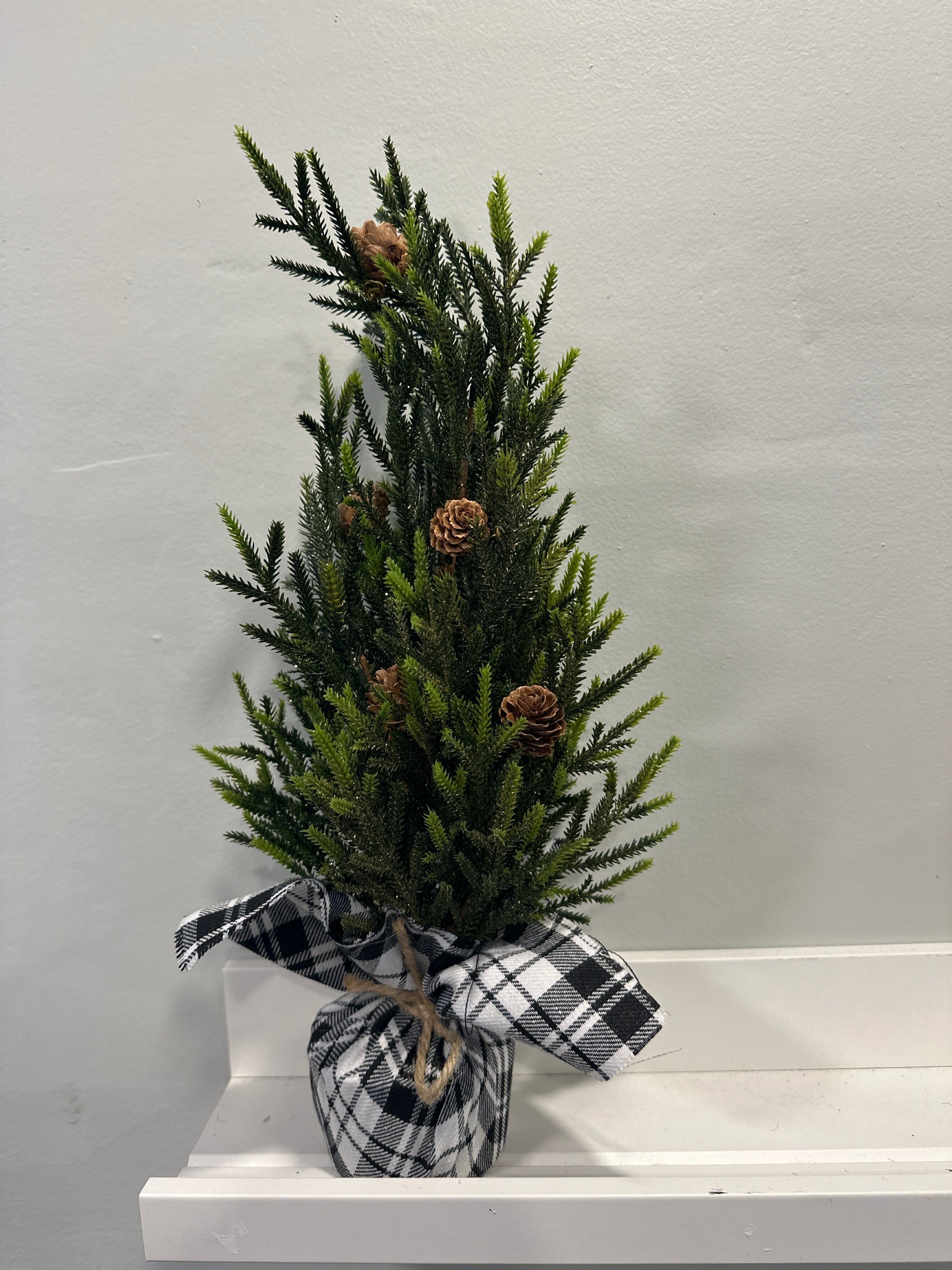 Mini Pine Tree with Pinecones & Buffalo Plaid Base