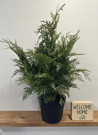 Bring a touch of nature indoors with this lifelike Potted Faux Cedar Plant. Featuring lush, realistic branches in rich green tones, this piece adds the perfect balance of freshness and texture to any space — no maintenance required!