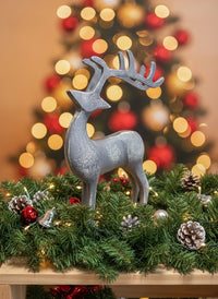 Crafted in a soft matte grey tone with weathered white accents, the reindeer stands tall with beautifully shaped antlers and a graceful posture—making it a timeless addition to mantels, shelves, entryway displays, or holiday centerpieces.