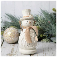 Add a touch of cozy charm to your holiday home with this rustic snowman figurine! Designed in a warm neutral palette, this piece blends perfectly with farmhouse, cottage, and traditional Christmas styles.