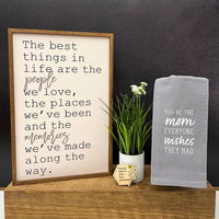 Celebrate what truly matters with this beautiful “The Best Things in Life” wooden sign. Featuring a heartfelt quote in elegant mixed fonts, it reminds us that life’s greatest blessings aren’t things—they’re the people we love, the places we’ve been, and the memories we’ve made along the way.