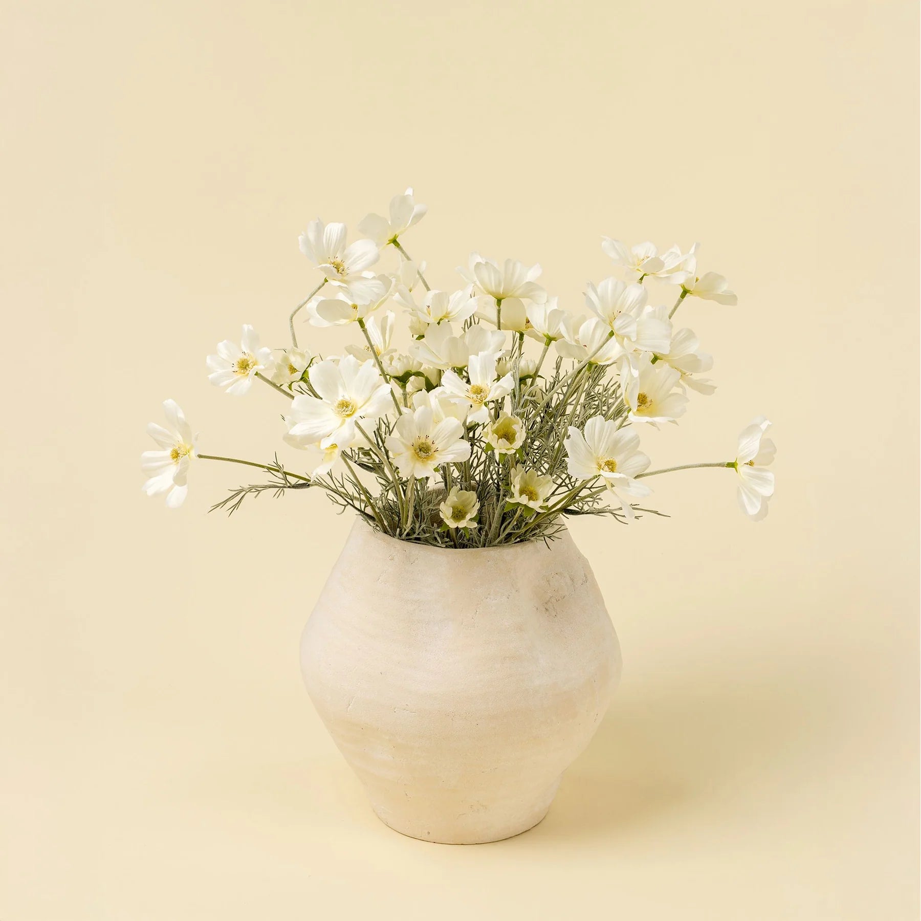 Bring effortless charm into your home with the White Cosmos Spray, a delicate faux floral designed to elevate your accent decor. With its bright white petals and fine green leaves, this beautifully detailed stem feels incredibly lifelike and makes a lasting impression in your favourite vases or decorative vase arrangements.