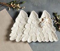 Celebrate the magic of the season with this elegant triple-tree serving platter from Mud Pie. Designed with beautifully sculpted, layered tree detailing, this creamy white ceramic platter brings a cozy winter charm to your holiday gatherings.