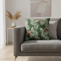 Bring cozy woodland charm to your home with this Wilde Pinecone Pillow. Featuring a deep evergreen background adorned with pine branches and pinecones in soft, natural tones, this pillow adds the perfect rustic touch to your holiday or winter décor.