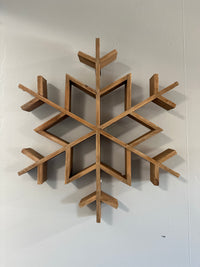 A stunning blend of rustic warmth and winter charm, this wooden snowflake wall shelf makes a beautiful statement in any holiday display. Its geometric snowflake design doubles as a functional shelf, offering stylish nooks to showcase small décor, mini ornaments, or seasonal accents.