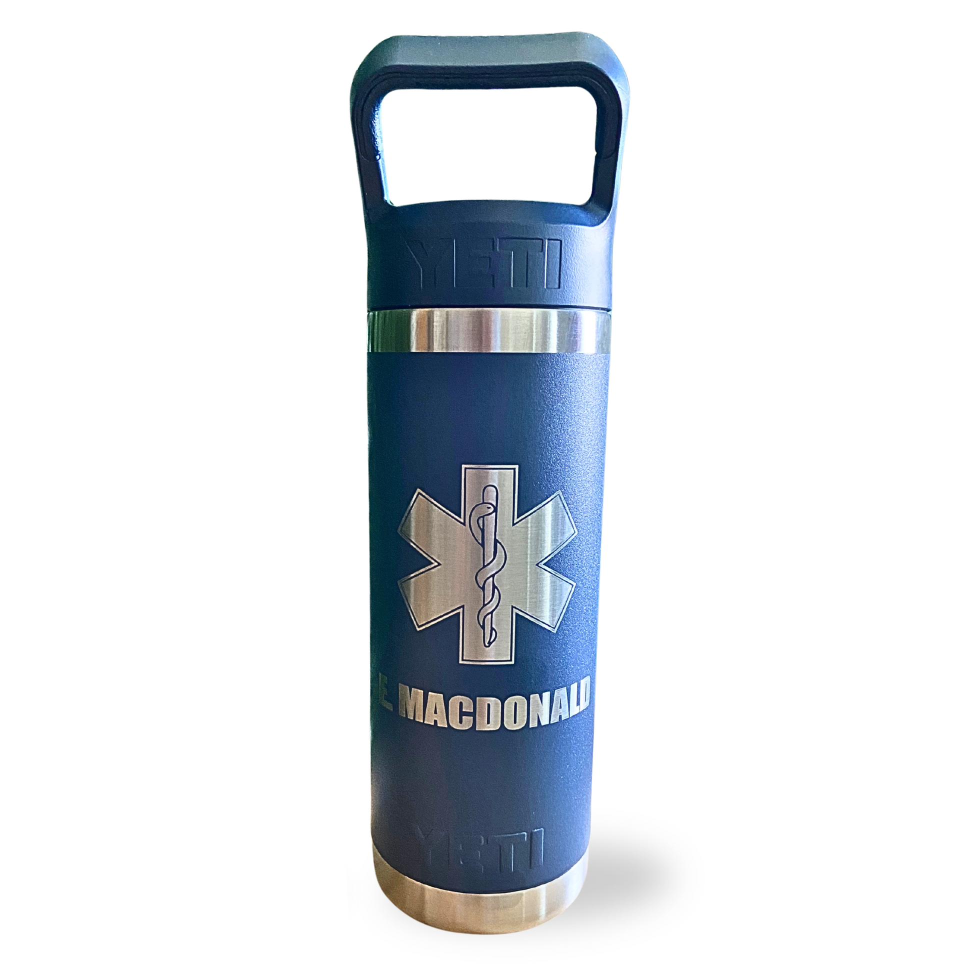 Each YETI 18oz Bottle is engraved with your custom design, logo, or name using a high-precision laser engraver. The permanent engraving won’t fade or peel, even with frequent washing. The color-matched straw lid is designed for easy sipping and ensures a secure, spill-resistant fit, making it perfect for both everyday use and on-the-go hydration.