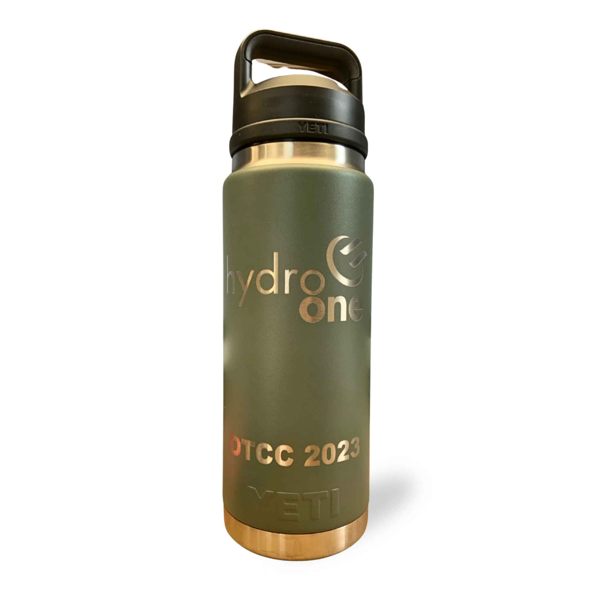 Each YETI 26oz Bottle is engraved with your custom logo, name, or design using a high-precision laser engraver. The engraving is permanent and will not fade, peel, or wear off, even with repeated use and washing. The Chug Cap provides an easy-to-use, leak-proof design that makes it simple to sip your drink while on the go.